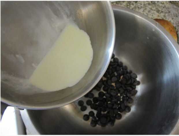 Este es un truco muy útil: hervir la nata en vez de calor el chocolate sí mismo. Chocolate puede ser fácilmente arruinado por sobre heated sin un termómetro, pero se puede evitar la tragedia con calefacción otro ingrediente en su lugar.