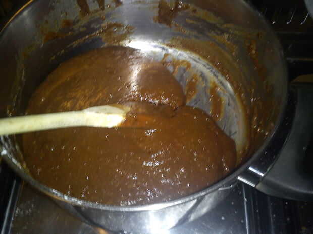 Una vez que llega a ser suficientemente densa para mantener su forma en lugar de llenar el fondo de la olla, sacar el calor.