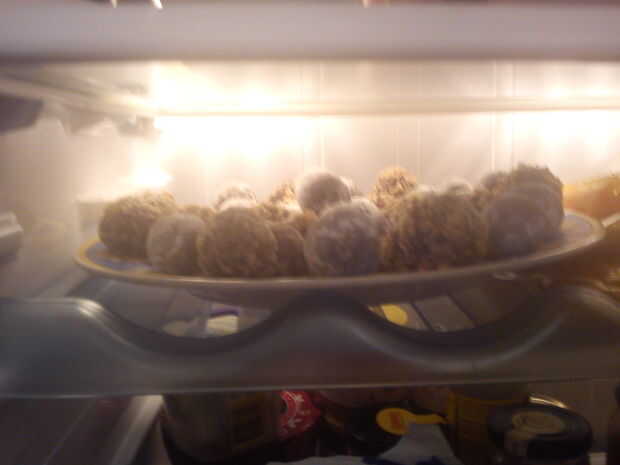 Porque mis manos estaban calientes por lo que la masa se convirtió en fofo decidí pero las bolas en la nevera durante la noche, luego en el congelador durante media hora sólo para asegurarse de que permanecían sólidas!
