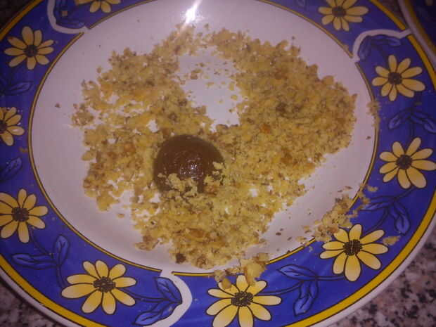 Ahora extraer una pequeña cantidad de masa y comenzar a rodar en las palmas a las bolas de forma, alrededor de 1 pulgada de diámetro. Ahora toma tu bola y rodar en azúcar o nueces, luego sacudir el exceso y la placa.