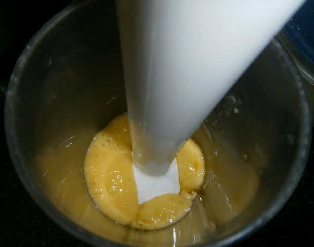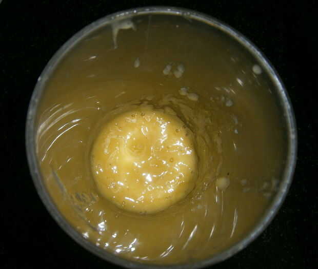 Añadir la miel. Mezcla, mezcla, mezcla - raspar abajo la licuadora cuando se pegan. No proceso. Mezcla hasta una textura cremosa.