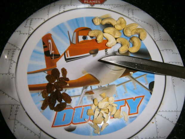 Añadir las pasas y anacardos picados. Dar una buena mezcla.