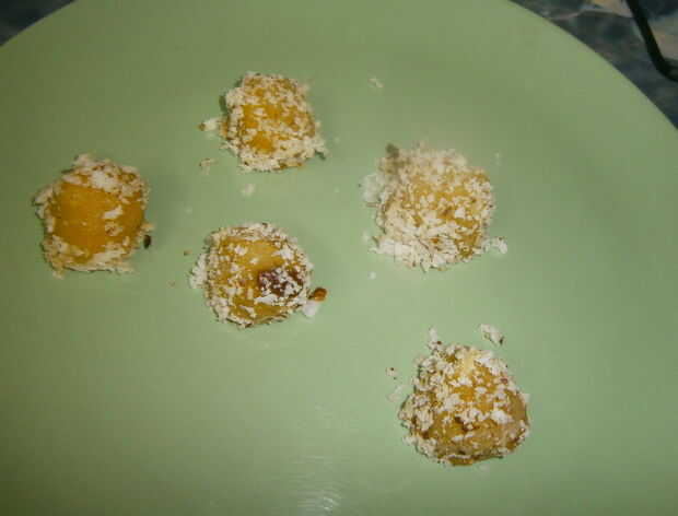 Ahora, saque las trufas del congelador y cubrir con rejillas de coco.