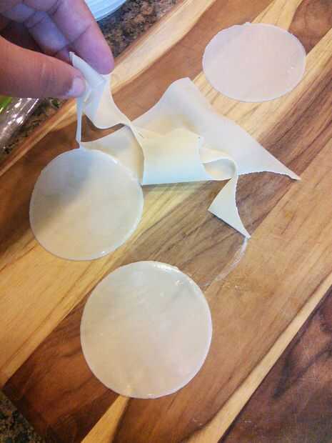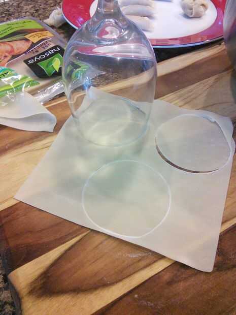 • Copa de vino de uso para cortar la envoltura del rollo de huevo en círculo.