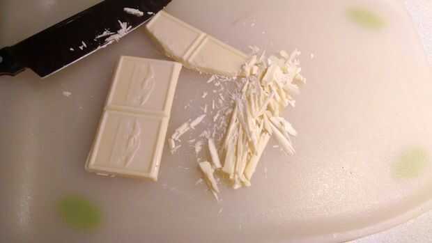 Coloque 4-oz de picado blanco chocolate en un tazón.