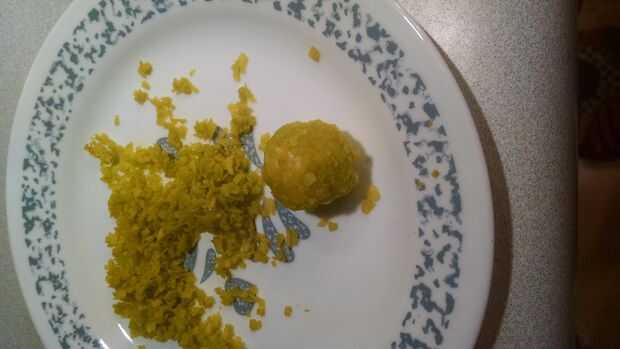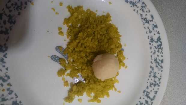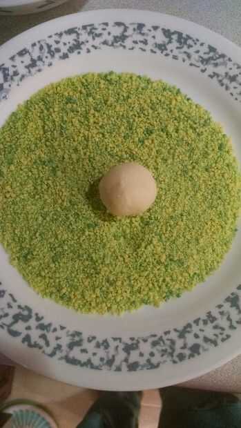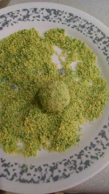 Escamas de coco colores: Coloque algunos copos de coco rallado (endulzado o sin endulzar) en procesador de alimentos y agregar un poco de colorante alimenticio. Mezcla hasta que el color esté bien distribuido. Rollo de trufa de coco hasta que estén cubiertas. No estaba contento con el verde amarillento que he creado, así que ten cuidado!