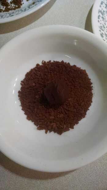 Capa de Chocolate con leche: colocar algunos trocitos de chocolate (tantos como quieras) en un procesador de alimentos y mezcla hasta que queden en pedazos pequeños. Rollo de trufa en pedacitos de chocolate hasta que estén cubierta.