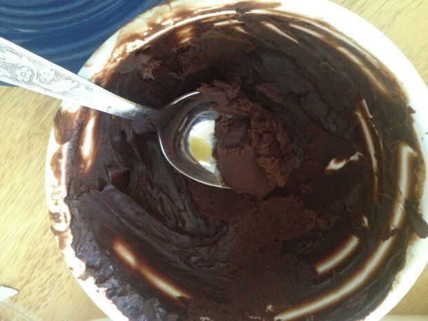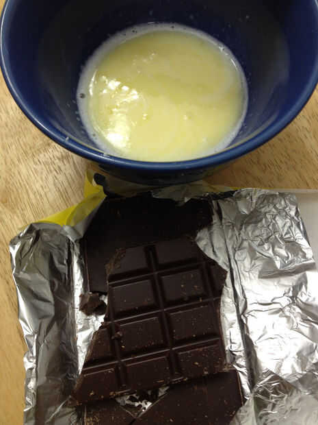 Dejar hacia fuera para enfriar ligeramente y añadir en el chocolate, revolver hasta que derritan