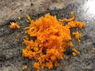 6 añadir la ralladura de naranja y el coñac. DE LA MEZCLA