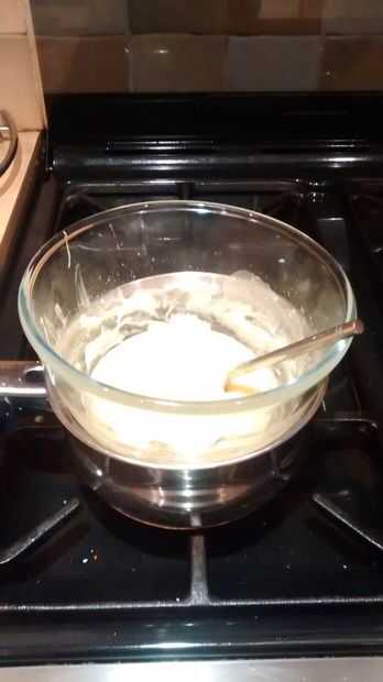 Comience calentando la crema doble. (Esto puede hacerse directamente en una olla pero prefiero poner la crema en un resistente al calor pyrex, Bol sobre una cacerola con agua, asegurándose que el agua no toque el tazón de fuente. Esto reduce el riesgo de sobrecalentamiento el chocolate).