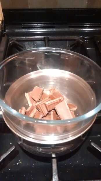 Romper el oscuro o chocolate con leche y derretir-en un recipiente resistente al calor sobre una cacerola de agua o en el microondas. Siempre soy prudente y utilizar la técnica de agua caliente como demasiado chocolate en el microondas he matado en mi vida.