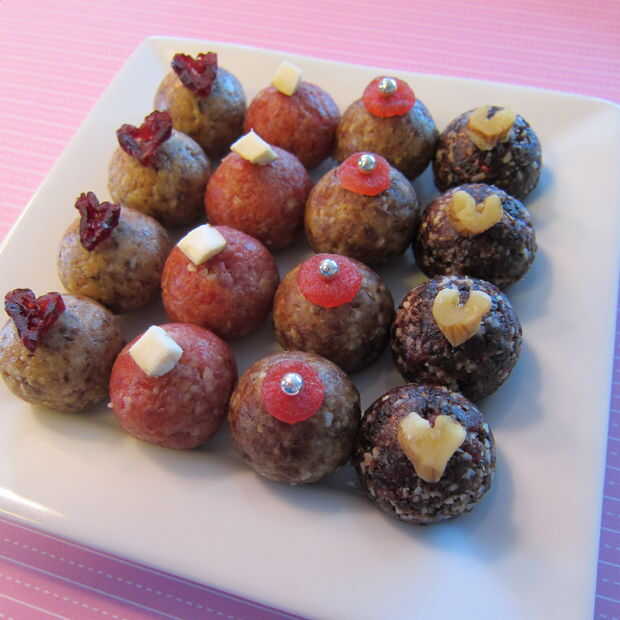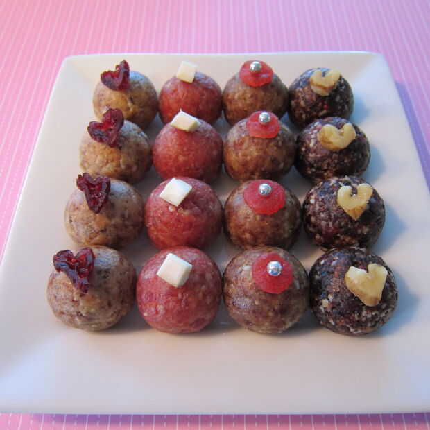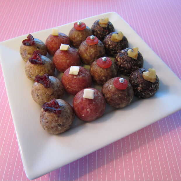 Voy a enumerar las cuatro variaciones que ves en la foto pero funciona cualquier combo de frutas y nueces.
