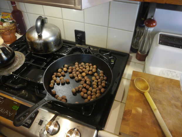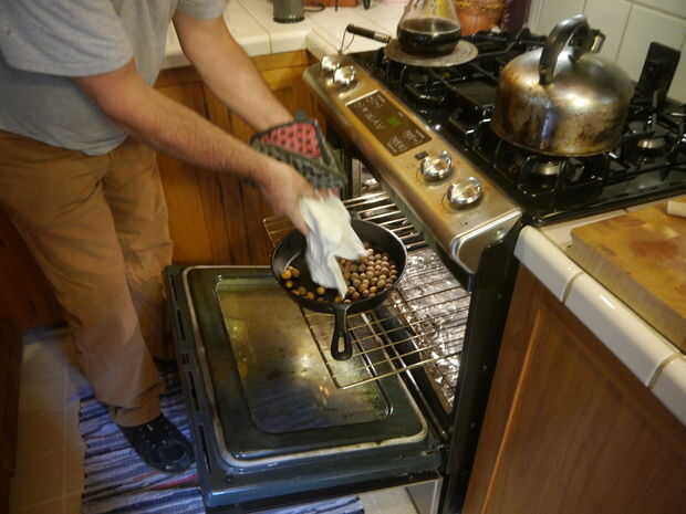 Cuando el horno alcanza 430 gota sus nueces en la sartén e iniciar el temporizador
