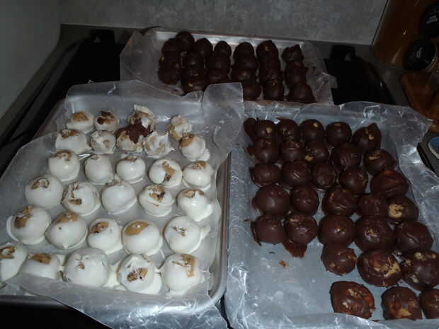 Cuando haya terminado, volver las hojas de la galleta en el congelador para endurecer la cobertura de chocolate. Las trufas entonces pueden conservarse en el refrigerador hasta que estén todos desaparecidos - confía en mí, será comidos mucho antes de que vayan mal!