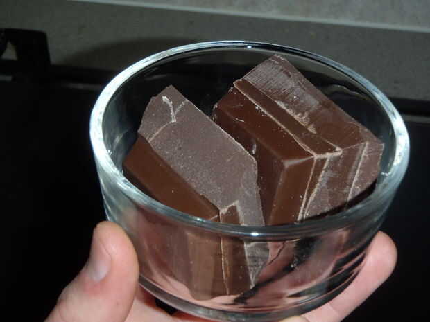 A continuación, sumergir cada bolita en el chocolate derretido y volver a la hoja de galleta. Sugiero utilizar un tenedor o un par de palillos para mojar las bolas y colocarlas en la bandeja para hornear galletas.