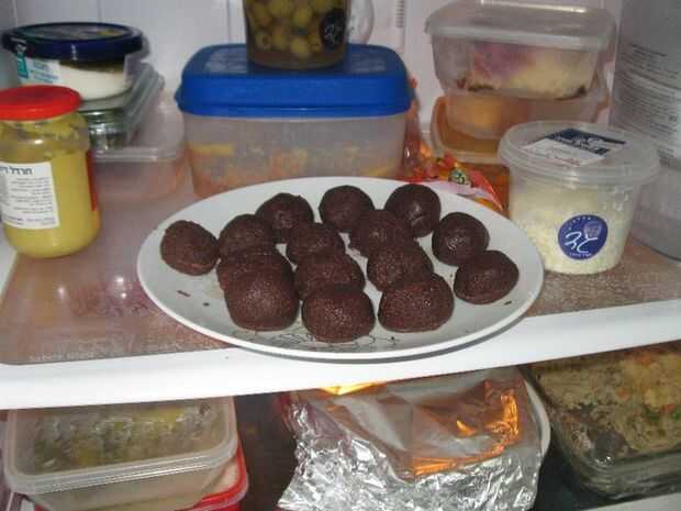 3. moldear chocolate en bolas y coloque en una bandeja para hornear galletas.