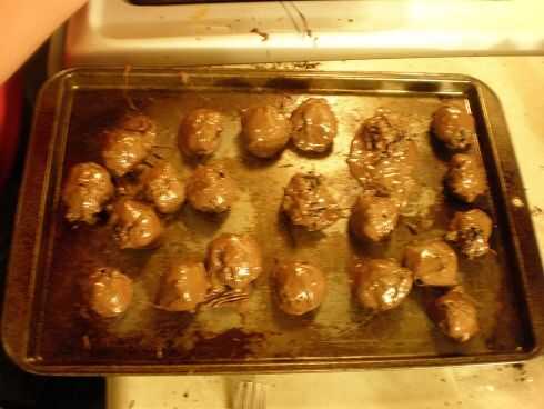 2. Sumerja bolas una a una en el chocolate y coloque en la bandeja para hornear galletas.