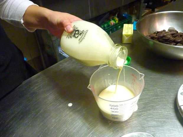 Colar la crema por un colador forrado con una gasa para retirar cualquier té residual. Apriete la estopilla para quitar toda la crema. Verter en una taza de medir para asegurarse de que la medida del líquido hacia la cantidad original (si no, agregue algunos más crema).
