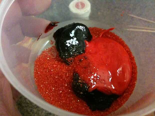 Puede uno ir de dos maneras... probar y "sentir" o precisión. He visto jarabe rojo y todos sabemos que representa la sangre, pero no parece. Estas cosas que yo, realmente sumaron a la mirada. Tal vez no los sprinkles... pero yo tenía que lanzar algo bonito allí. jaja. Y la ventaja es que pasó la prueba del sabor.