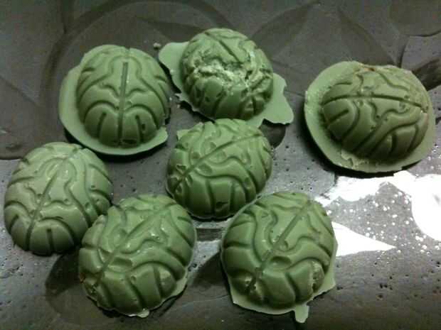 Después de 10-20 minutos, debe hacerse. Mina apenas apareció muy fácilmente y no use ningun spray en el molde ni nada. Enjuague y limpie cualquier sobra de cerebro en trozos en el molde, así que tu próximo set obtiene las impresiones de la misma.