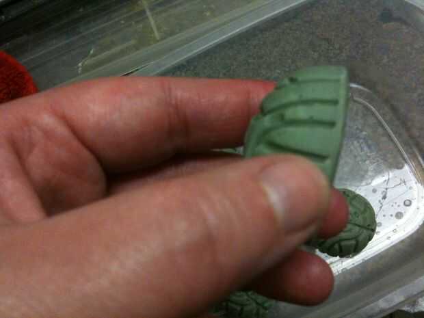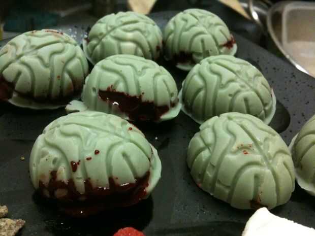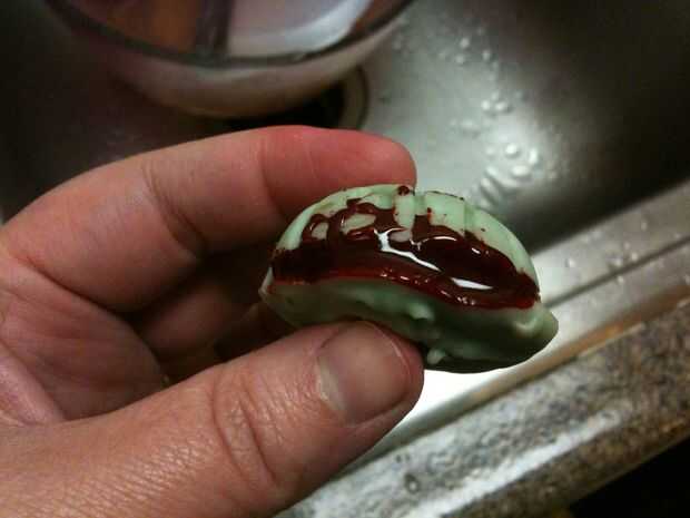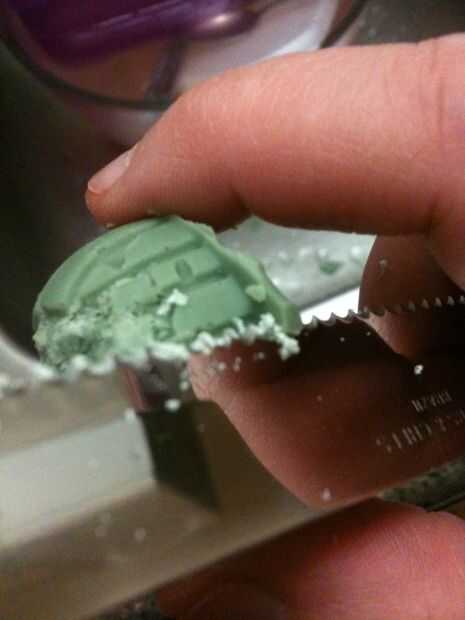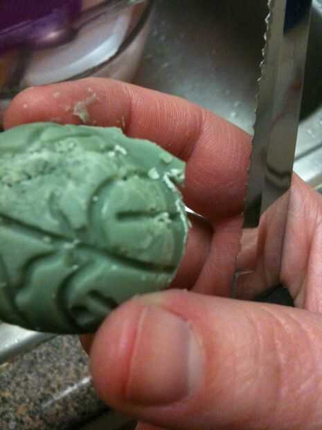 Básicamente, usted Raspe los bordes y el chocolate se afeite. Puede hacerlo a los fondos planos de los cerebros, si no son de nivel y quieres que sean. Cuando usted limpia su los bordes, solo tienes que ejecutar la punta del dedo alrededor del borde y va redondo y suave hacia fuera con el calor natural del cuerpo. Es genial. :)