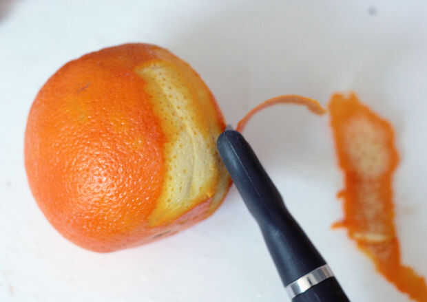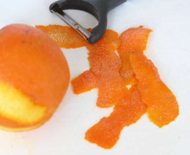 Pele cuatro o cinco buenas tiras de corteza. Por supuesto, quiere evitar la carne blanca por debajo, ya es la parte que lo hace amargo.