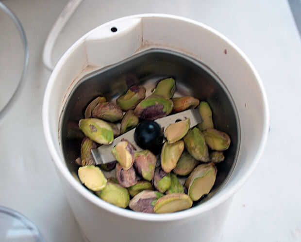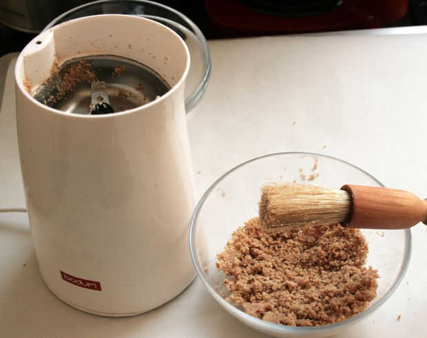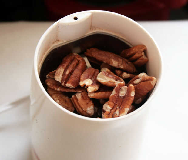 Haz que la amoladora retroceda y puré de sus tuercas. O ir a ellos con un cuchillo. El molino hacía un poco más fino de lo que realmente quería. La próxima vez te ponen en una bolsa de plástico y romper en trozos pequeños con una botella de vino. (Hey, usar lo que tienes derecho?)