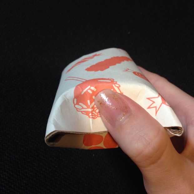 6. Voltee al lado sin el borde del papel y sangrar la otra mitad del tubo, superposición de la primera muesca.