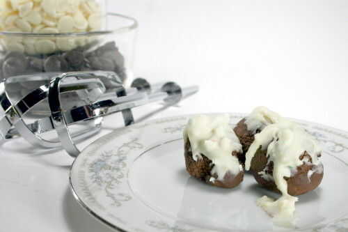 Este instructivo describe otro método para hacer trufas de forma que los hace suaves y lisas con una ligera capa de bastones de caramelo triturado y chocolate blanco, perfecto para la próxima temporada.