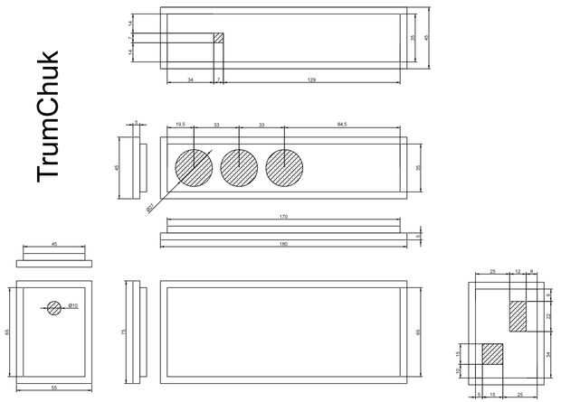 Utilicé madera de balsa espesor de 5mm a diferentes formas de prototipo para el TrumChuk y este fue el último diseño que se me ocurrió. No dude en hacer su propia interpretación del cuerpo instrumento como estoy seguro que hay muchas otras maneras podría montarse y que hay muchos otros materiales de que pudo construir a partir.