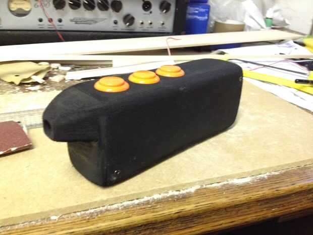 Una vez que el cuerpo fue construido que lijar todos los bordes duros de y un pedazo de la boca de un sólido bloque de balsa con un agujero y ventilación. También dejó a un lado sin pegar para ser utilizado como un acceso a la electrónica y mantiene en su lugar con dos tornillos pequeños.