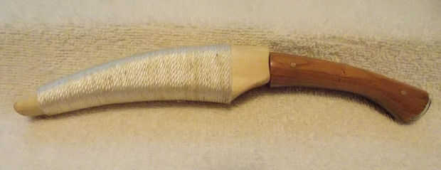Tstal - este cuchillo fue inspirado por el cuchillo de la Na'vi de la película Avatar, así que he llamado tstal que es Na'vi para el cuchillo. Hice una funda para utilizando laminado roble y envuelto en cuerdas de nylon blanco.
