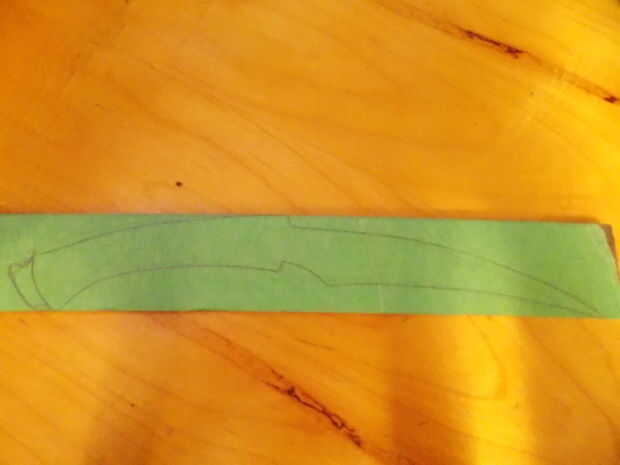 Ahora estás listo para hacer su cuchillo. Cubra el metal en cinta de pintor, pone el patrón superior y traza alrededor de él con un lápiz.