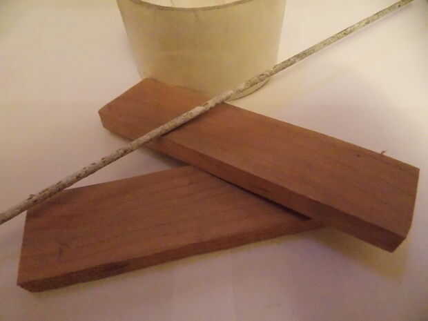 El mango es a continuación, con dos piezas de roble 3/8" y 1/8" varilla de soldadura.