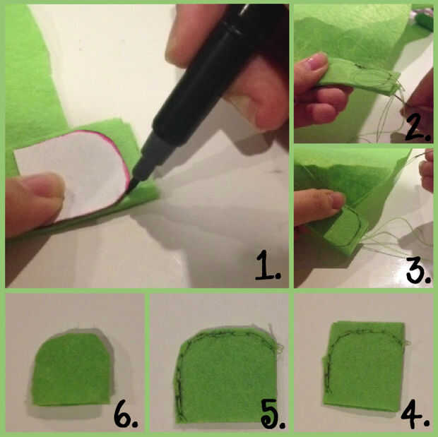 1. dobla un pedazo de fieltro verde por la mitad y trace la plantilla de su pierna en él.