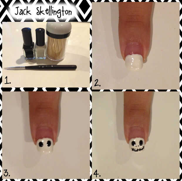1. necesitas esmalte de uñas blanco y negro. Para añadir los detalles, se puede utilizar un cepillo del arte del clavo, pero si no tienes uno, palillos de dientes funciona bien.
