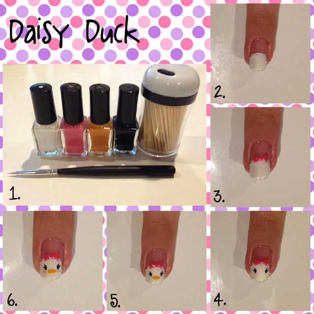 1. necesitas esmalte de uñas blanco, luz rosa, naranja y negro. Para añadir los detalles, se puede utilizar un cepillo del arte del clavo, pero si no tienes uno, palillos de dientes funciona bien.