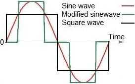 LOS TIPOS. Hay tres tipos básicos de convertidores CC-CA según su AC salida forma de onda: cuadrada onda, onda sinusoidal modificada y onda sinusoidal pura (véase el diagrama abajo). La onda cuadrada es el tipo más simple y más barato, pero hoy en día prácticamente no se utiliza comercialmente debido a la calidad de la energía baja (THD≈45%). Las topologías de onda senoidal modificada (que son realmente modificados cuadrados) proporcionan pulsos rectangulares con algunos puntos muertos entre medio-ciclos positivos y negativos. Son convenientes para la mayoría de las cargas electrónica, aunque su THD es casi 24%.