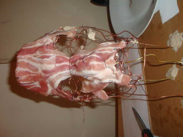 Construir su obra solicitada utilizando alambre de cobre y panceta.