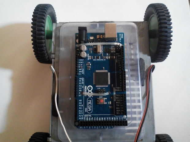 este es mi primer robot arduino, y estoy bastante contento con el resultado. Lo que surgió es un robot que con modificaciones se puede hacer casi cualquier cosa en el mundo de arduino pequeños robots. La electrónica es muy simple. Sólo necesitas un p