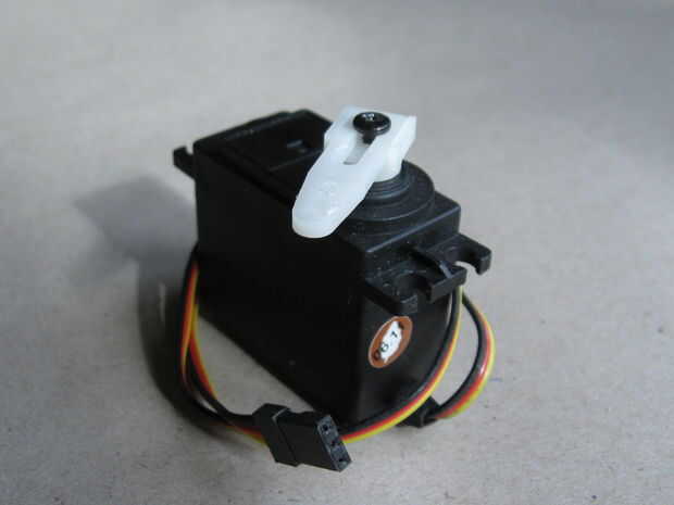 Usted puede preguntarse por qué mi servo tiene eso perno blanco, donde tuyo podría tener un disco plano, una cruz o algo. No importa, servos viene con todas las clases de "cuernos servo". Sólo necesitamos algo allí, que podemos pegar la cabeza a!