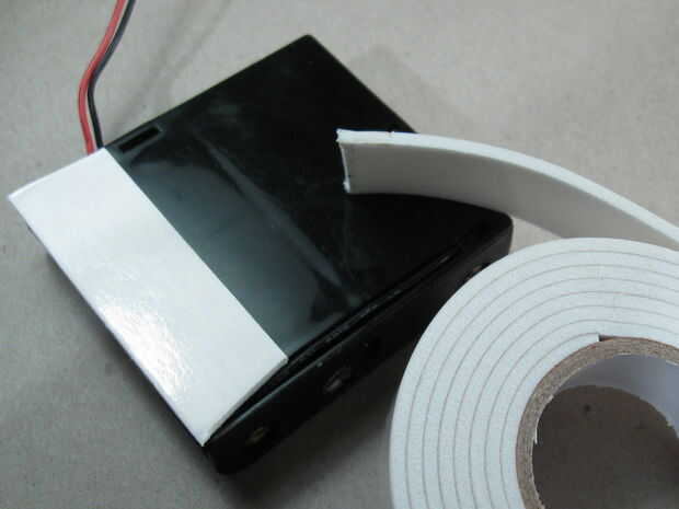 Lo que puedes hacer, es simplemente pegar los motores en el soporte de la batería, usando la cinta espumosa. Si las pilas están allí, y las ruedas son lo suficientemente grandes para tenerlos colocados debajo del árbol, todo simplemente se equilibrará por cuenta propia. Bastante extraño, en realidad, cuando lo pienso :)