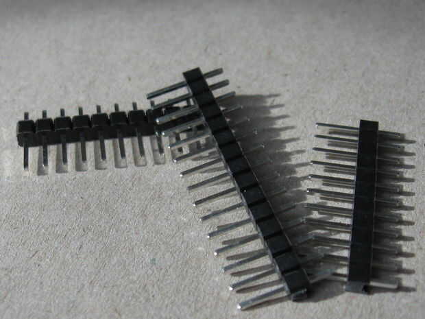 Muchas veces las tablas que compres sólo tienen todo en ellos, y que hace que sea difícil tapar algo en. Una manera de superar esto, es soldar los cables en los agujeros. Otra es agregar estos pines, así que usted puede conectar de los cables, como con las cabeceras de servo y la hembra que se muestra a continuación. "Por qué no acaba de poner alfileres en todos los agujeros de la fábrica", os preguntaréis. Bueno, no sé. Tal vez nos dará la opción. También es posible soldar hembra encabezados sobre el tablero, tal vez por esta razón.