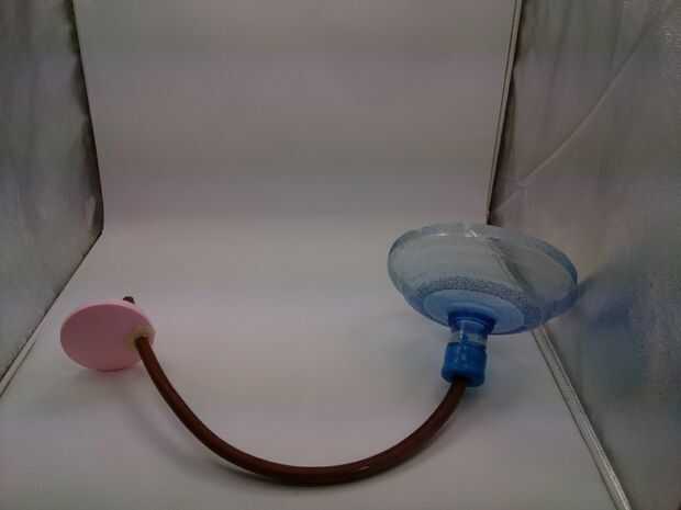 Conecta la manguera a la boca del botellón y sellarlo con pegamento caliente y cinta adhesiva. El otro extremo de la manguera se conecta a la tapa removible del humidificador de aire y es sellado también.
