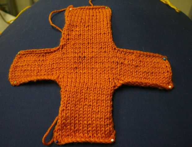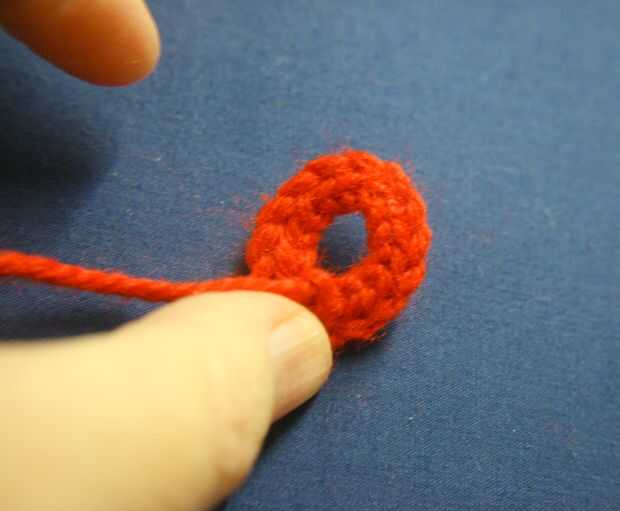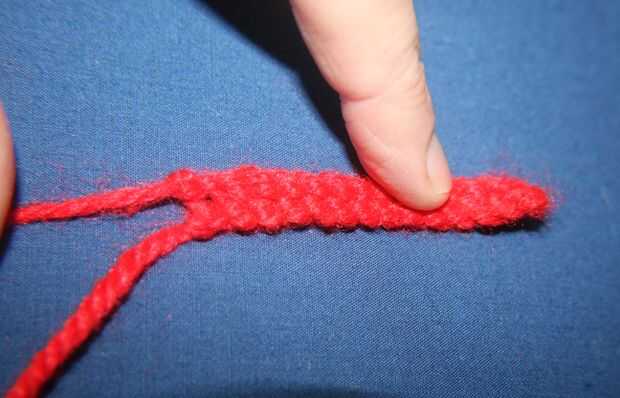 Utilizando agujas de 3,25 mm (sólo usé los doble punta) e hilo rojo, a 15 puntos de sutura.