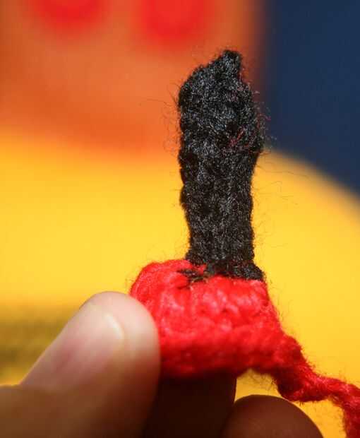 Negro cola de hilo de rosca del hilo de rosca y pasar hacia arriba y hacia abajo a través del i.  -Esto hará que sea más firme.