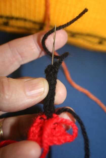 Uso de 3,25 mm doble punta agujas e hilo negro, en 3 puntos.