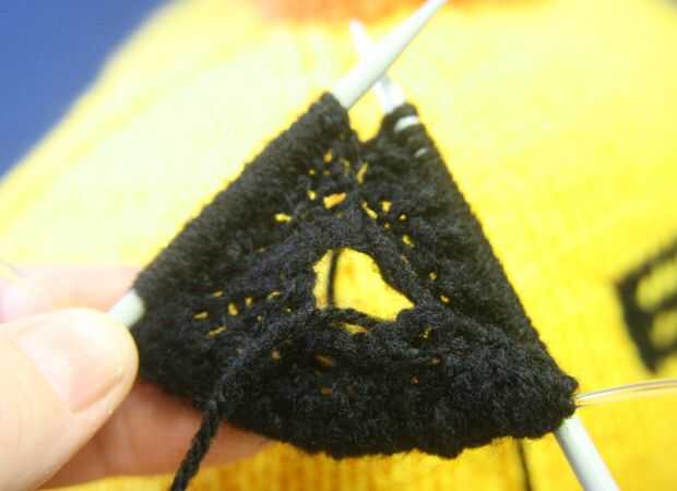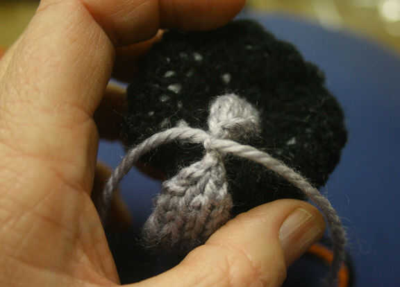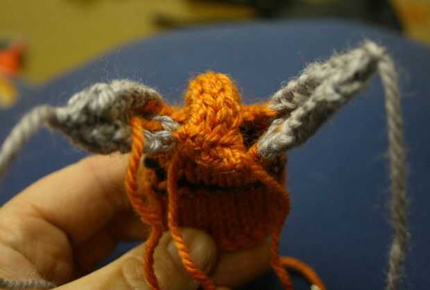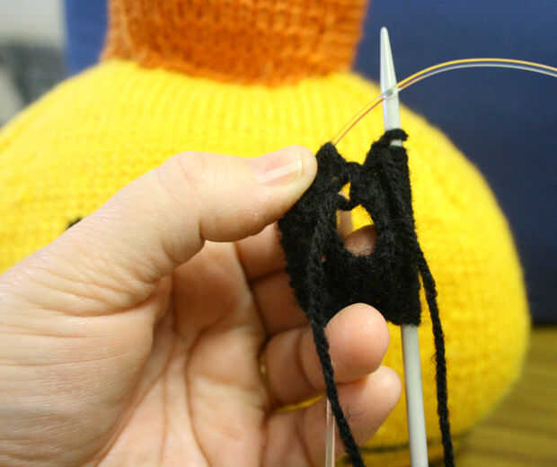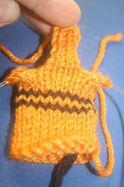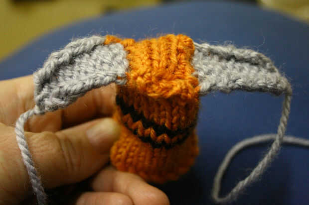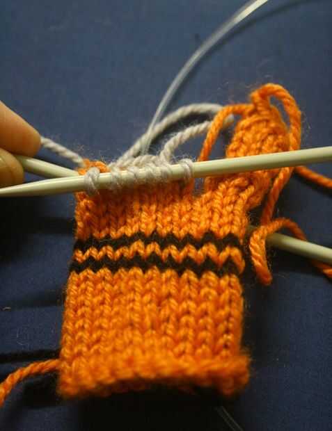 Romper el naranja y gris y tejer a través de puntadas restantes, en vuelta.