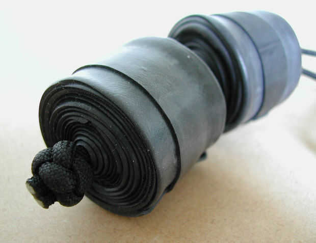 Envuelva una tira de tubo interno alrededor del bucle de cuerda anudada, estirando un poco a medida que avanza.