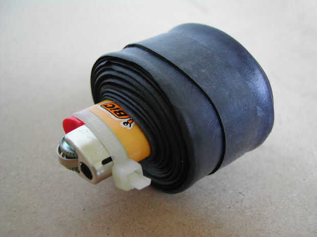 Alternatiely, puede almacenar el tubo interno alrededor de algo que siempre lleva, por ejemplo, bomba, palancas de neumático, kit de reparación, etc. de la puntura.